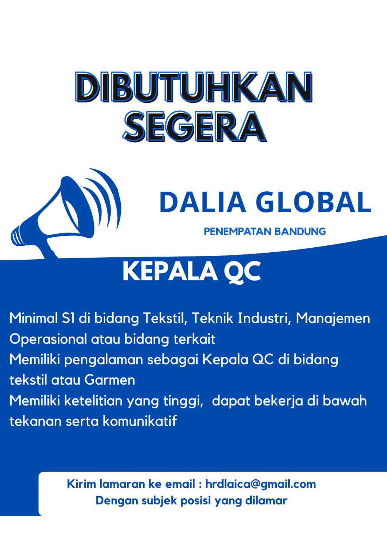 PT. Daliatex Kusuma perusahaan tekstil membutuhkan beberapa tenaga kerja muda untuk memenuhi tenaga kerja di perusahaan kami, adapun posisi yang dibutuhkan diantaranya: