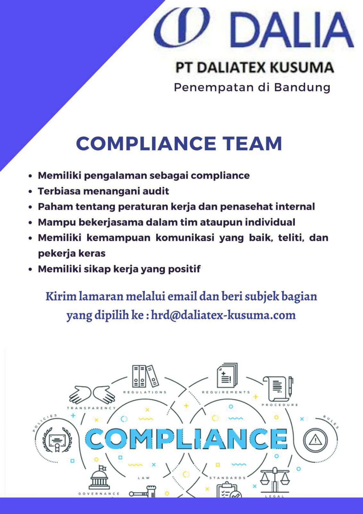 Kirim lamaran melalui email dan subjek yang dipilih ke: hrd@daliatex-kusuma.com