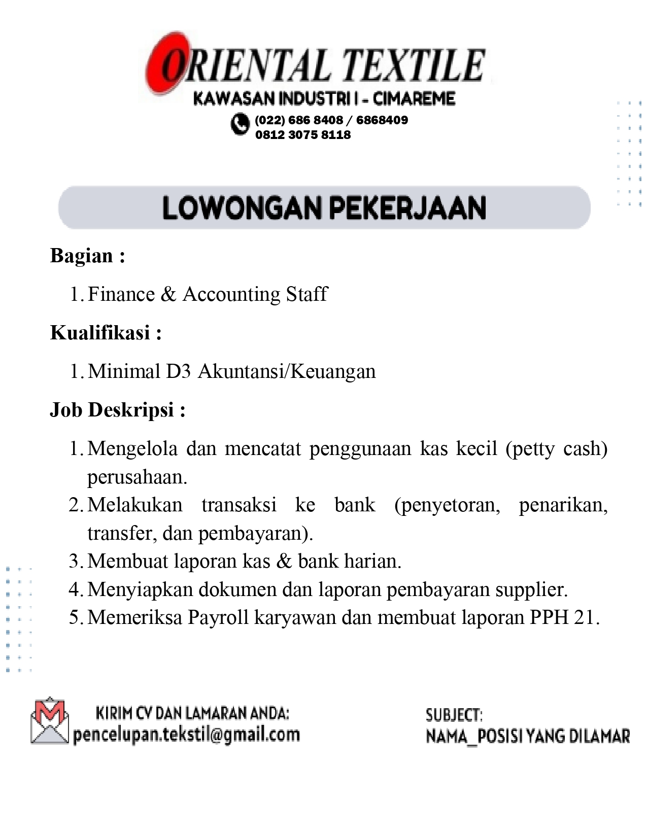 PT. Oriental Textile Indonesia, membutuhkan tenaga kerja untuk Alumni Univer...